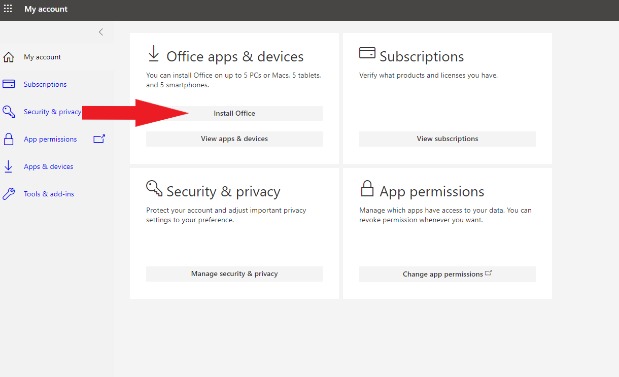 Once you are in your account, click the checkerboard menu (shown below) to access Office 365 in the cloud, or you may choose to install Office 365 on your computer. Watch this video to learn about the MyClassroom Office 365 integration. Access to your Office 365 portal is at your fingertips in every course!